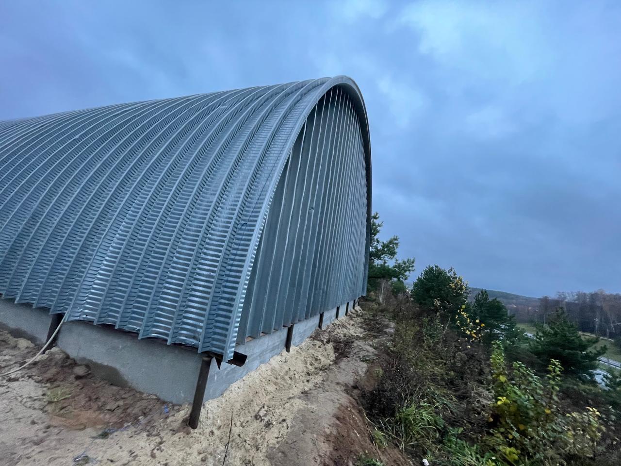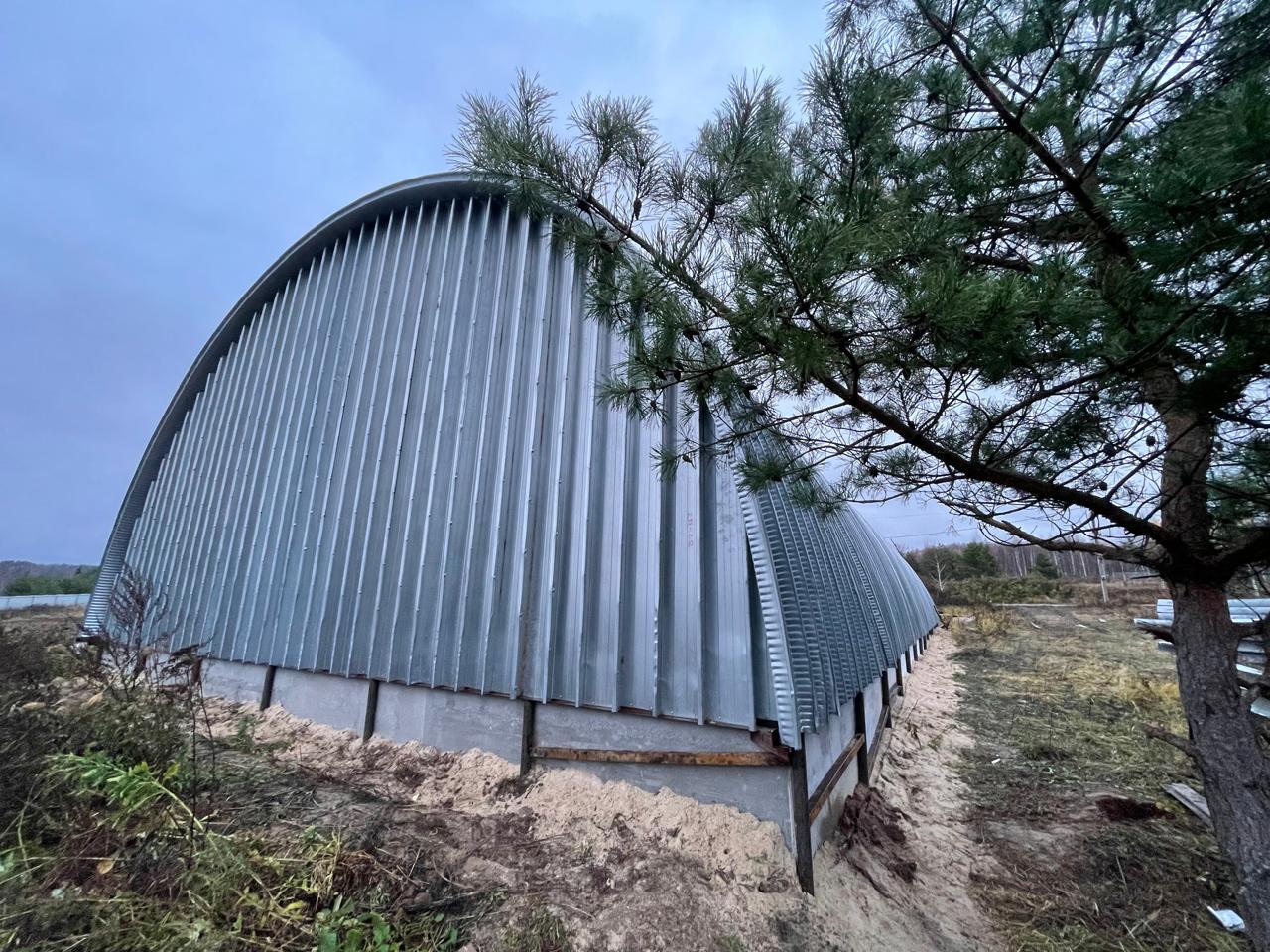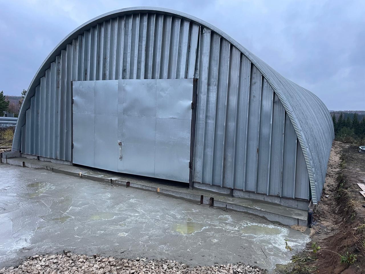 Продается бескаркасный арочный ангар площадью 460 м2. Не утепленный. Основной материал - рулонная сталь 1 класса, конструкция торцевых стен - профилированная рулонная сталь. Пол бетонный. Ворота одни, распашного типа. Ангар находится в д. Азаровка Тульской области. К участку подведено электричество, 800 киловатт, что покрывает потребности большинства производств. Также на объекте имеется бытовка, которую можно приспособить под самые разные цели.